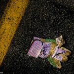 A lonely, well used, and abused working man’s glove lays in the middle of the street....