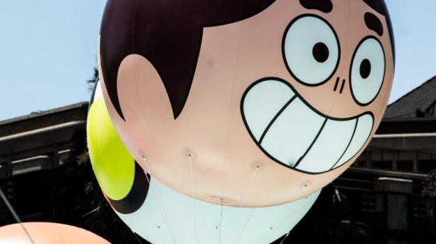 Walking around a comic conventions I happened upon these balloon heads with smiling...