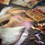 At an indoor street fair, various artists were creating chalk drawings. This one caught...